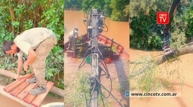 En este marco, cuadrillas del Gobierno local llevaron adelante diversas tareas de mantenimiento en distintos puntos del territorio, que incluyeron la refacción de puentes, pasarelas, muelles y rampas, así como el recambio y reparación de luminarias públicas.